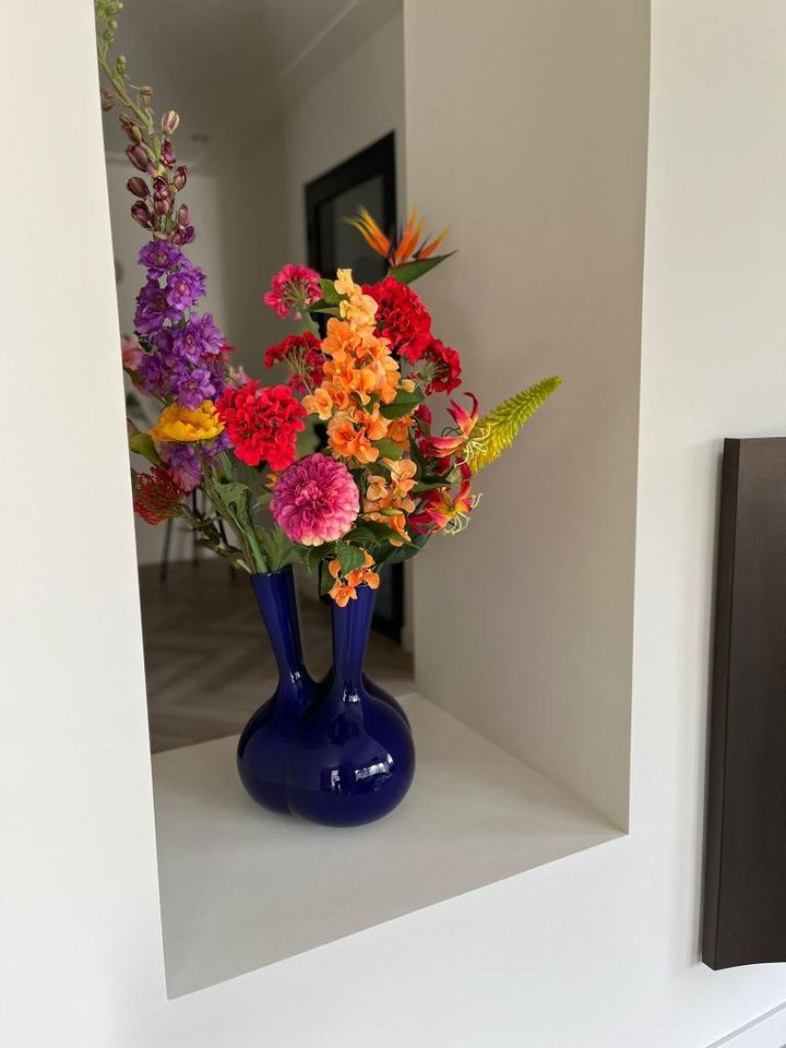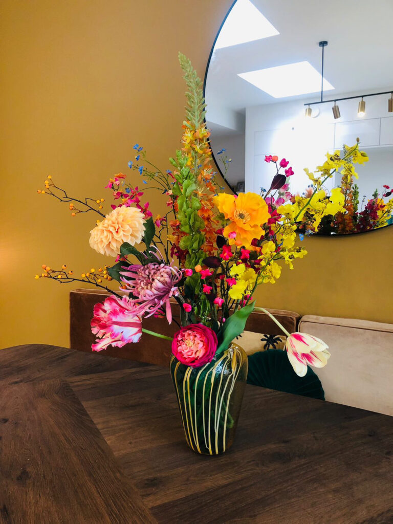 Vaasje Vals zit sinds November 2022 gevestigd in het centrum van Den Bosch en daar maak ik, Céline, elke dag de leukste boeketten, bloemstukken en andere toffe combinaties. Voor ik deze kleurrijke winkel (met meer dan 400 verschillende zijde bloemen en planten!) startte werkte ik als regio retailmanager in de interieursector. Lekker met mensen en prachtige kleurrijke interieuritems werken, daar ligt mijn passie! Een fijn thuis maken van jouw huis, en daar kunnen bloemen een prachtige rol in spelen.