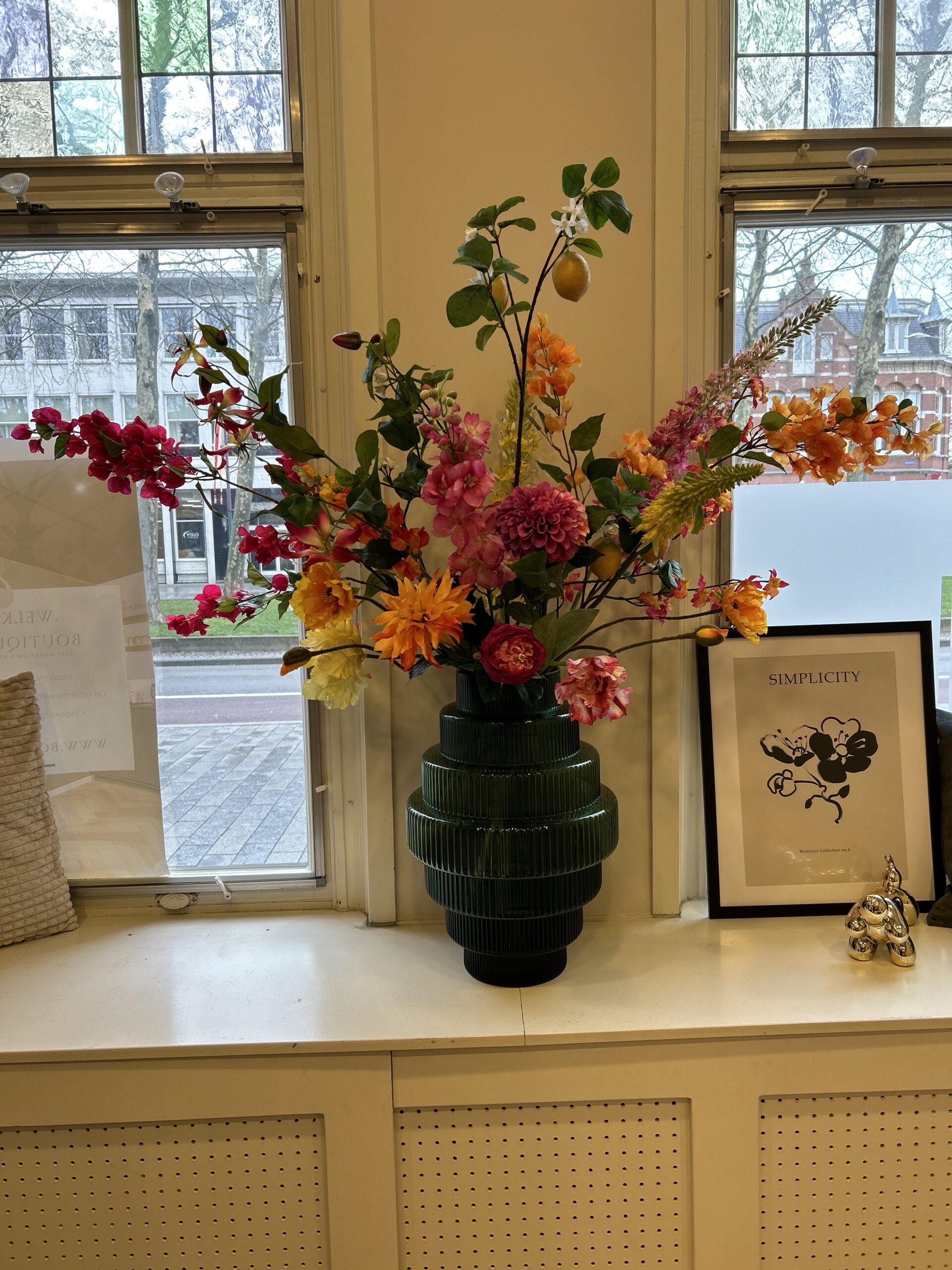 De Dahlia is absoluut een van mijn favoriete bloemen. In de natuur vind ik het verbazingwekkend hoe de bloem is opgebouwd, en dat is in kunst niet anders. Deze Dahlia is de grotere pompon variant en heeft een prachtige dieproze kleur.