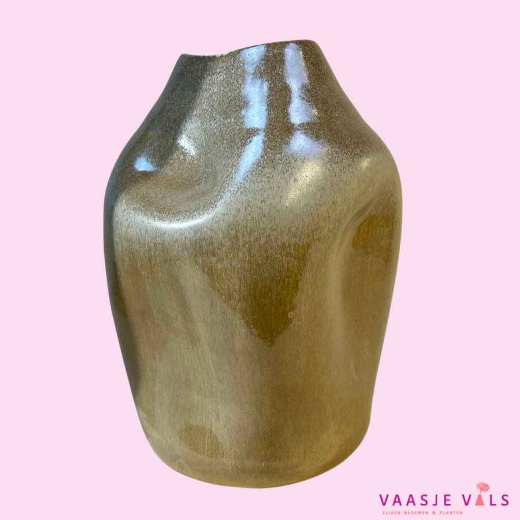 De vaas is 33cm hoog en 22cm breed. Hij is handgemaakt, waardoor de vormen en de kleur altijd een beetje kunnen afwijken van de foto’s.